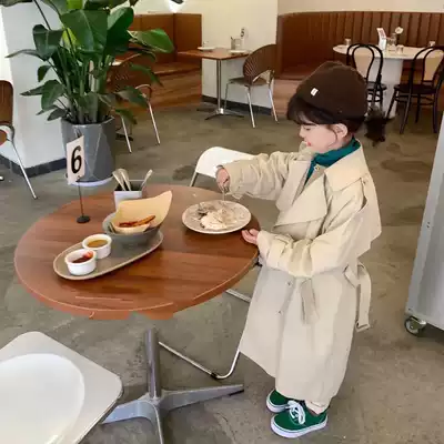 paip home 2021 autumn new girl child apricot-colored windbreaker Korean classic loose collar tie ins ins