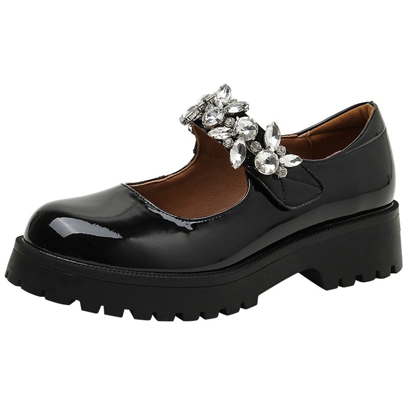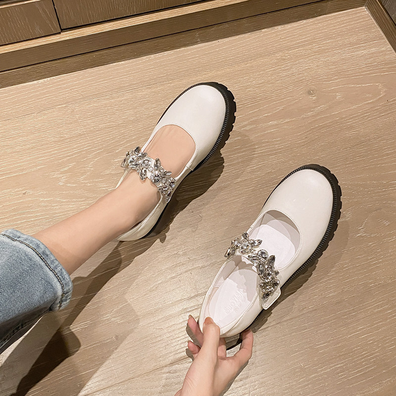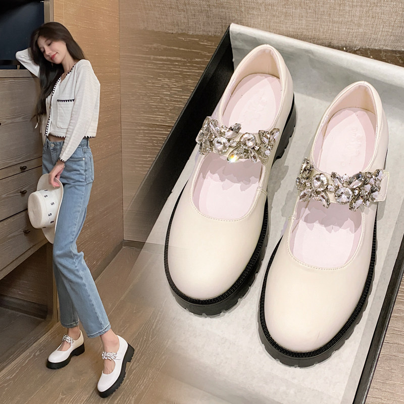 Rhinestone Mary Jane shoes 2023 autumn new all-match Japanese leather single shoes British style thick bottom jk small leather shoes for women