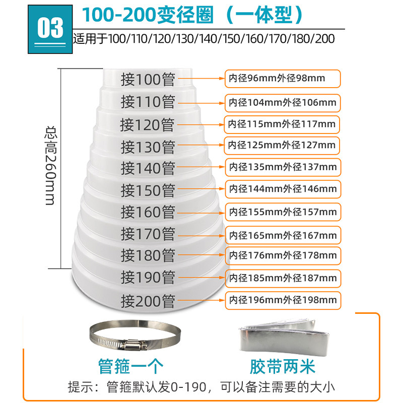 160-180 diameter reducing ring 2 meters tape throat hoop 140-180 diameter reducing ring 2 meters tape throat hoop 80-200 diameter reducing ring 2 meters tape throat hoop 80-120 change