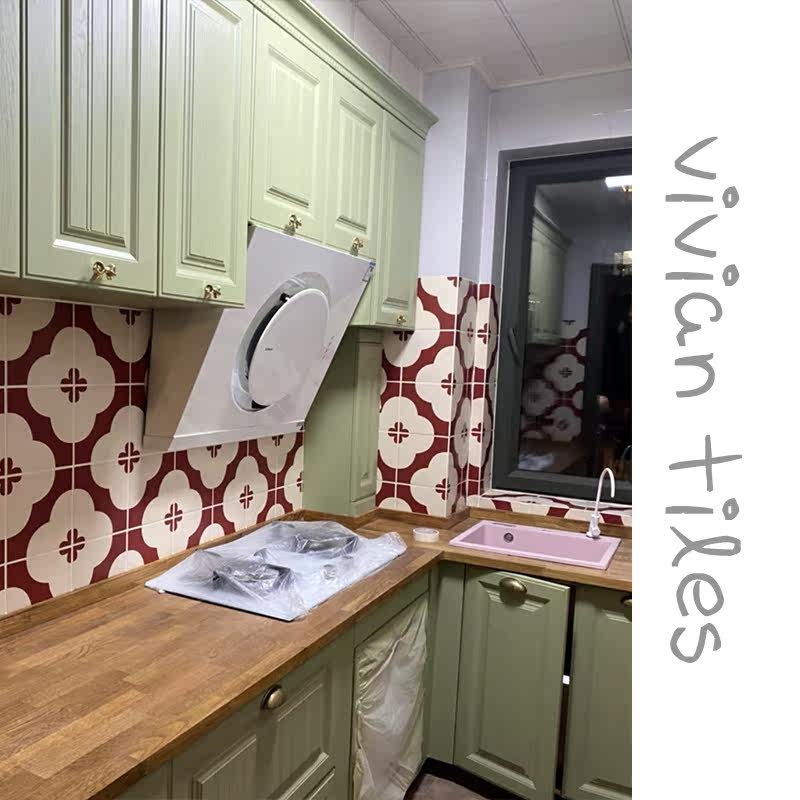 Destitute Wind Small Flower Brick Tile Wine Red Wall Brick Kitchen Make-up Room Balcony Bathroom Dining Room Floor Tiles 200200