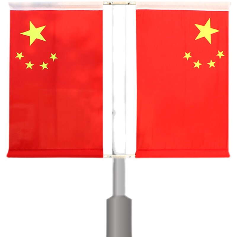 No. 4 and No. 5 flag pole flag party flag five-star red flag street road road telephone pole street lamp hanging type