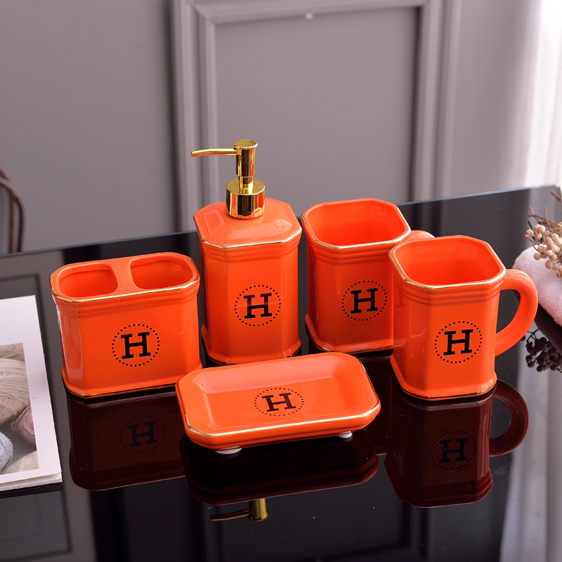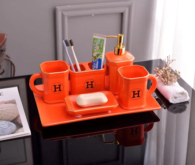 Home Orange Series Bathroom Wash suit Ceramic Mouthwash Rack Toothpaste Toothbrushing Cup Bathroom Five Pieces Sets Six Sets