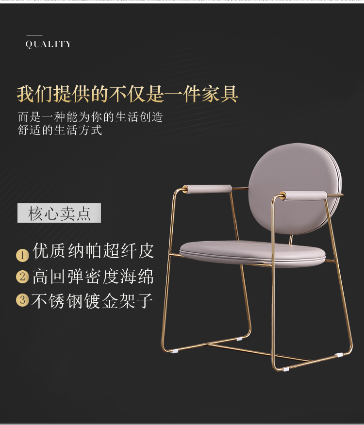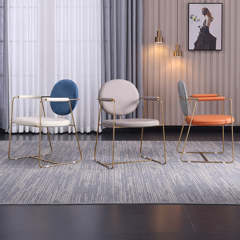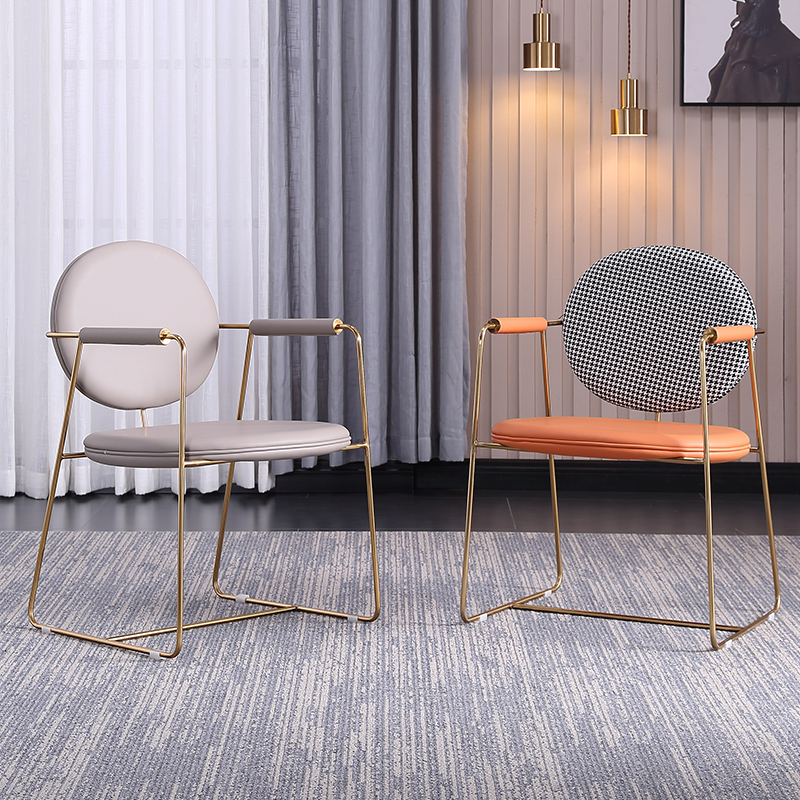 Light luxury chair dining chair home high-end sense leather houndstooth conference room mahjong restaurant stainless steel manicure chair