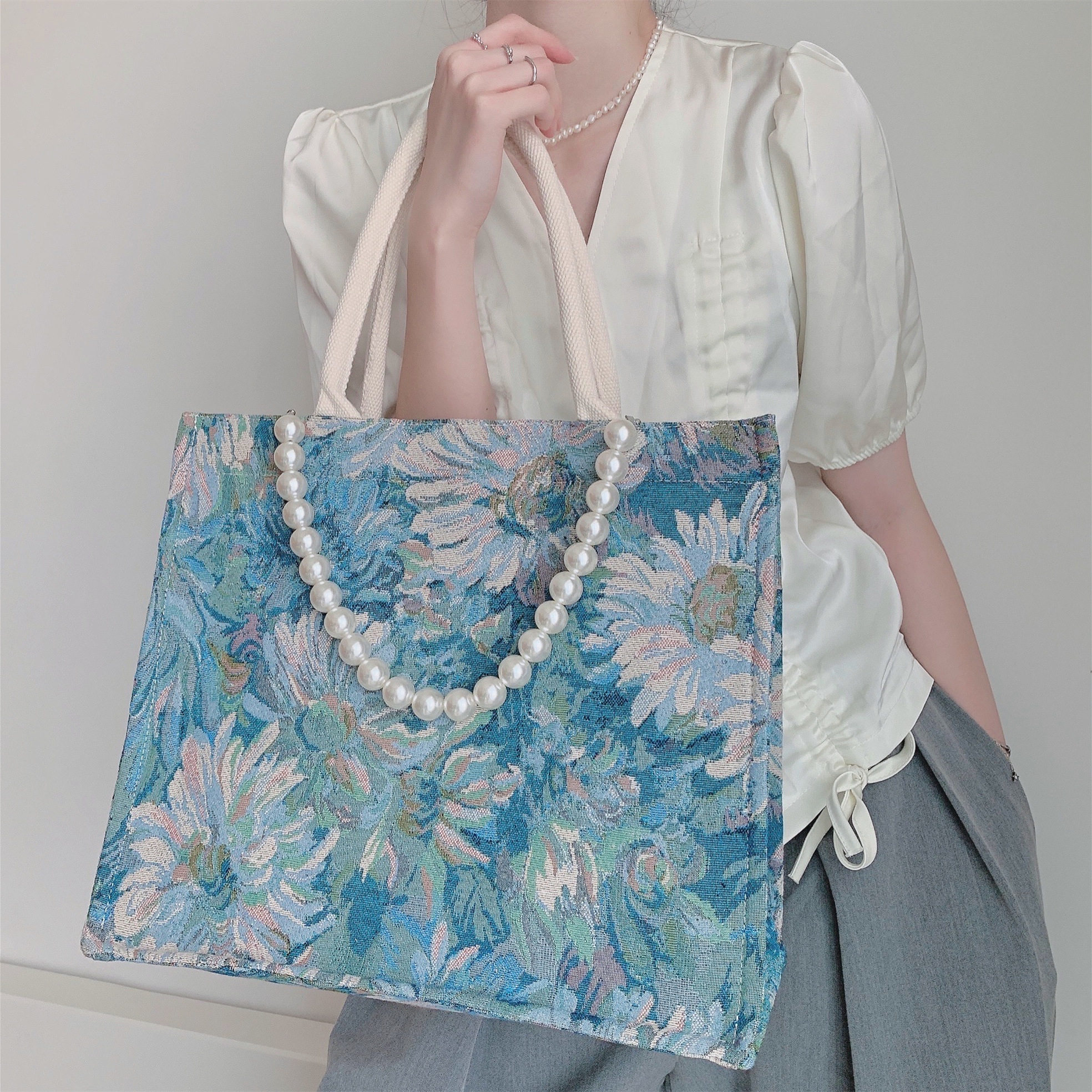 muji hemp cloth renovation bag Monet garden oil painting special bag 2021 new large capacity women's bag single shoulder handbag