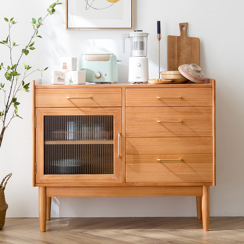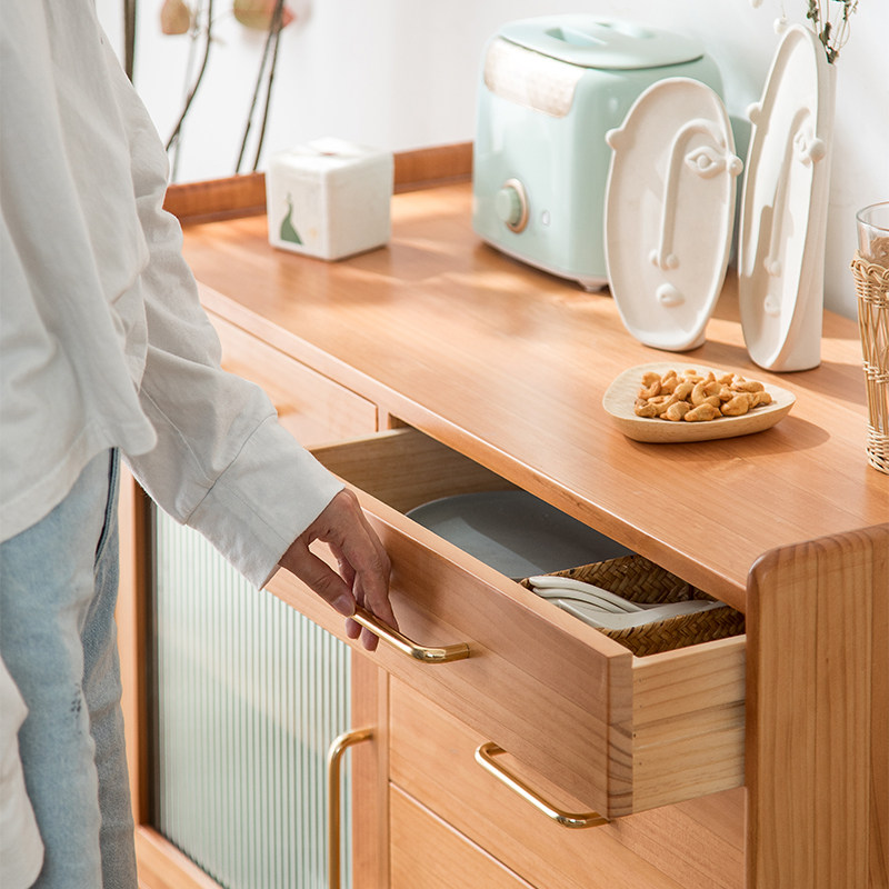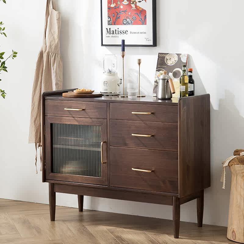 Simple and modern dining cabinet integrated against the wall American small living room locker Nordic solid wood tea cabinet