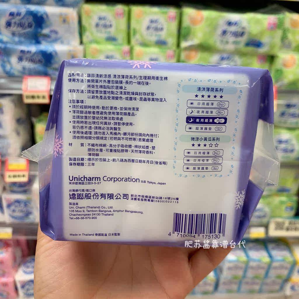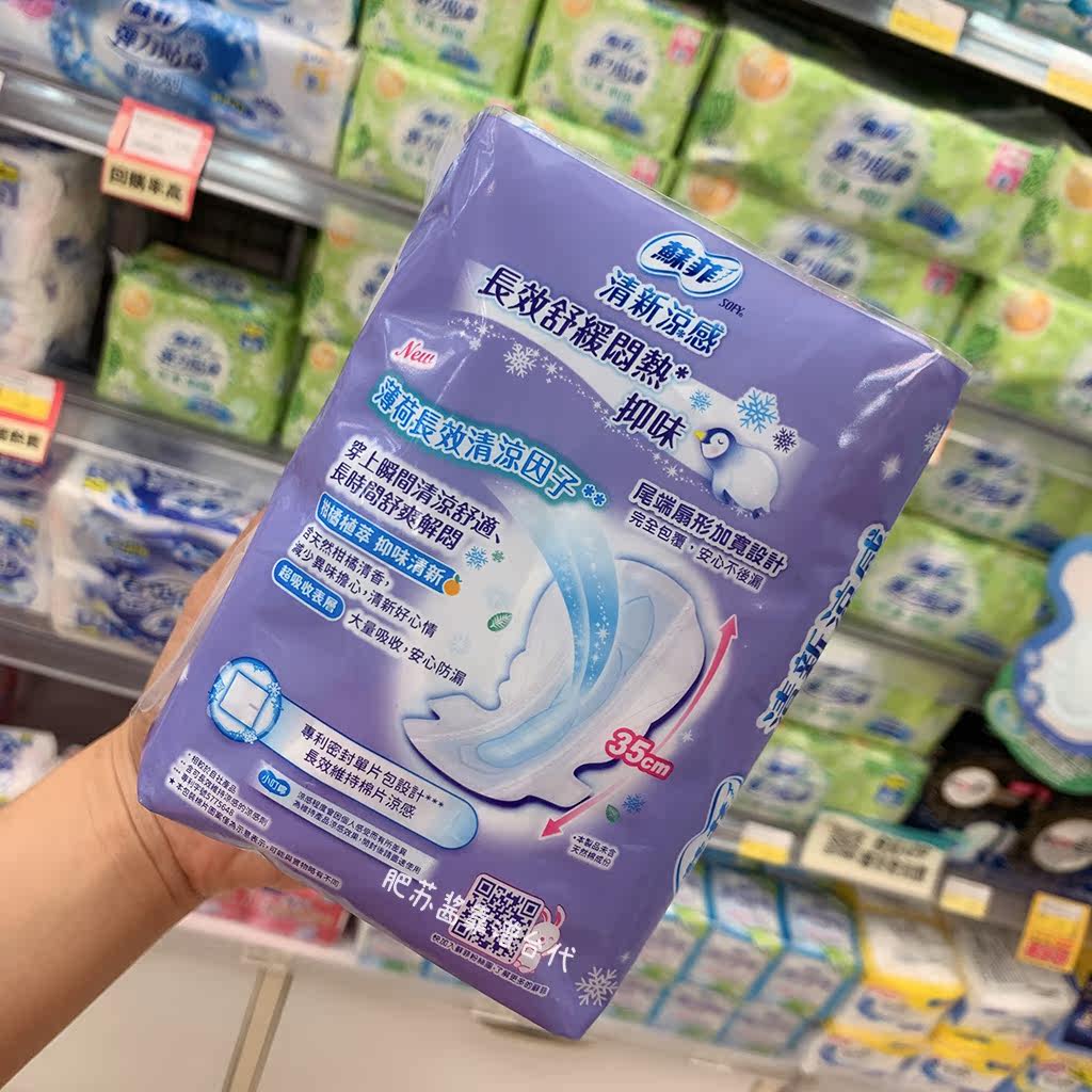 3 Packs ~ Sufi Fresh Cool Sensation Sanitary Cotton Summer Limited Mint Cool 35CM 8 slices