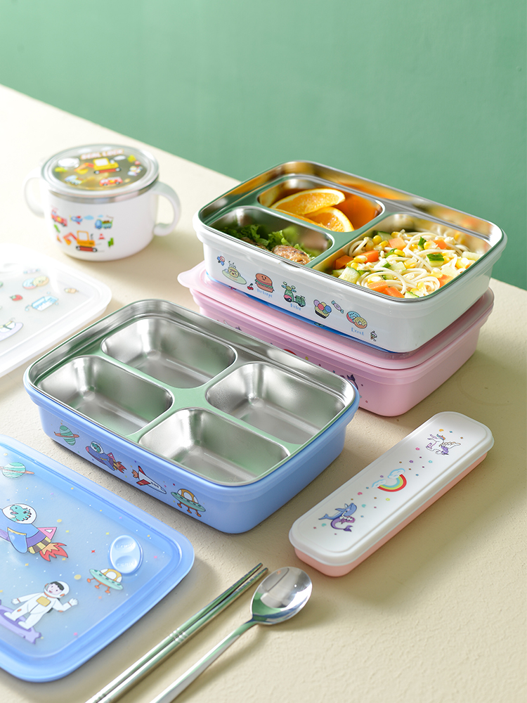 Korean children's 304 stainless steel lunch box for primary school students special four-grid lunch box divided grid men and women lunch box seal