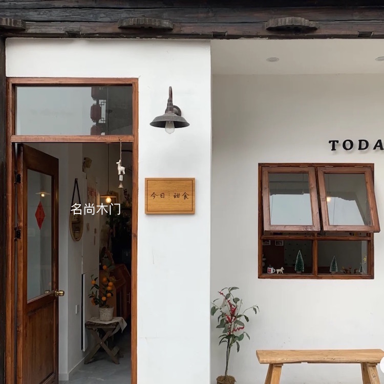 Simple solid wood wooden door grocery store glass door and window combination coffee shop outdoor entry door net red snack bar