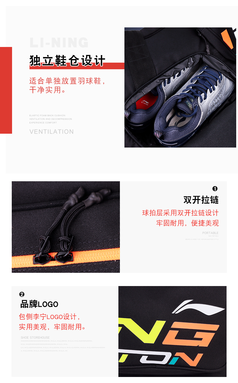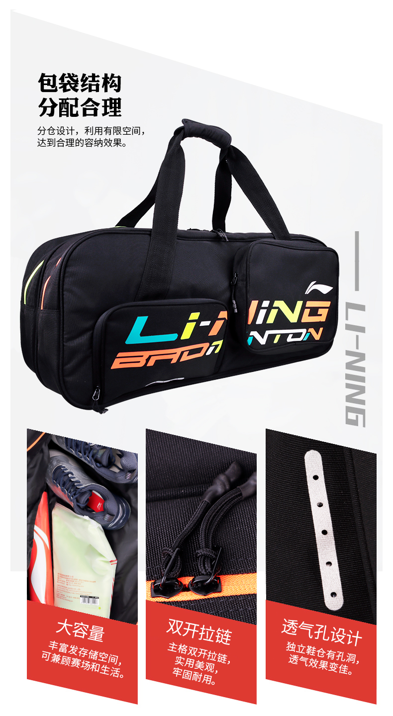 Real China Li Ning ABJR024 6 only square badminton bag Han version designed with large capacity wet material bag