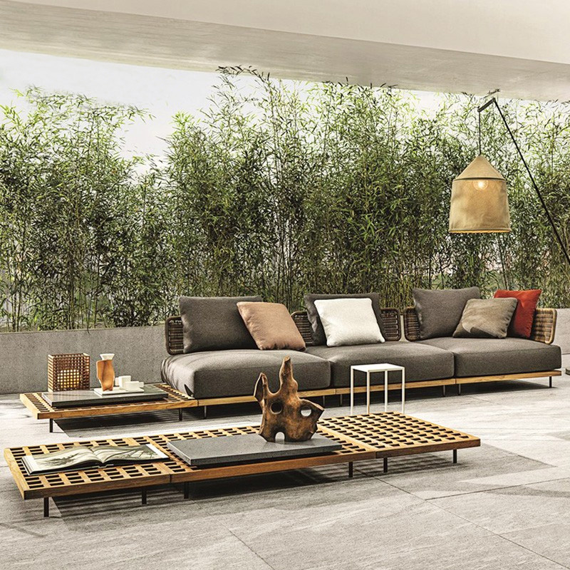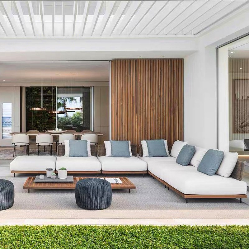 Outdoor courtyard sofa villa waterproof sunscreen teak coffee table combination rattan outdoor open-air garden leisure furniture