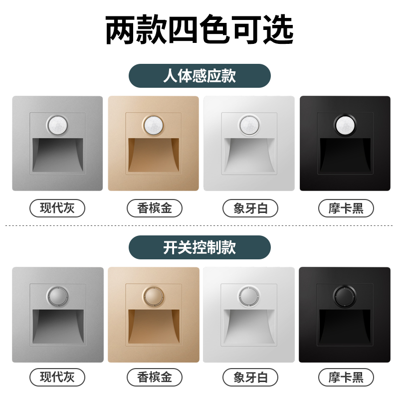 Human body induction - elegant white - positive white light human body induction - elegant white - warm yellow light human body induction - gold - positive white light human body induction - gold - warm yellow light human body induction - black - positive white light human body induction -