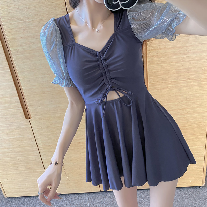 ins wind cute girl seaside fairy conservative student 2021 new cover belly thin chest swimsuit female summer