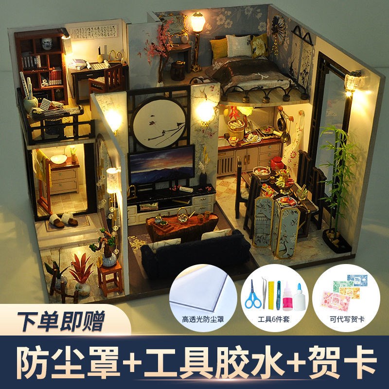 Birthday gift diy Jiangnan girlfriends bamboo shadow assembly model handmade house hut creative gift for loft female