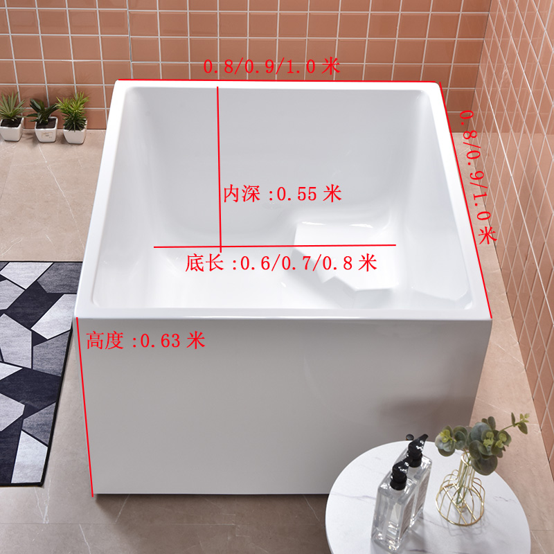 Small family type square bathtub Japanese style independent acrylic deepened for adults Home Sitting Bubble Bathtubs