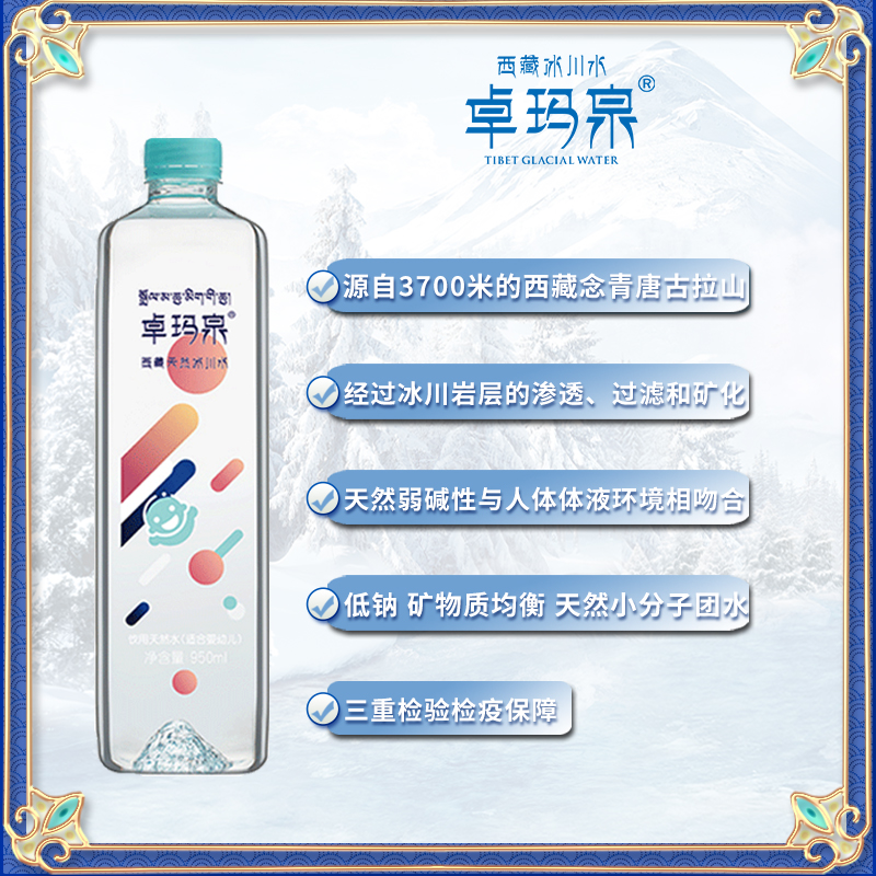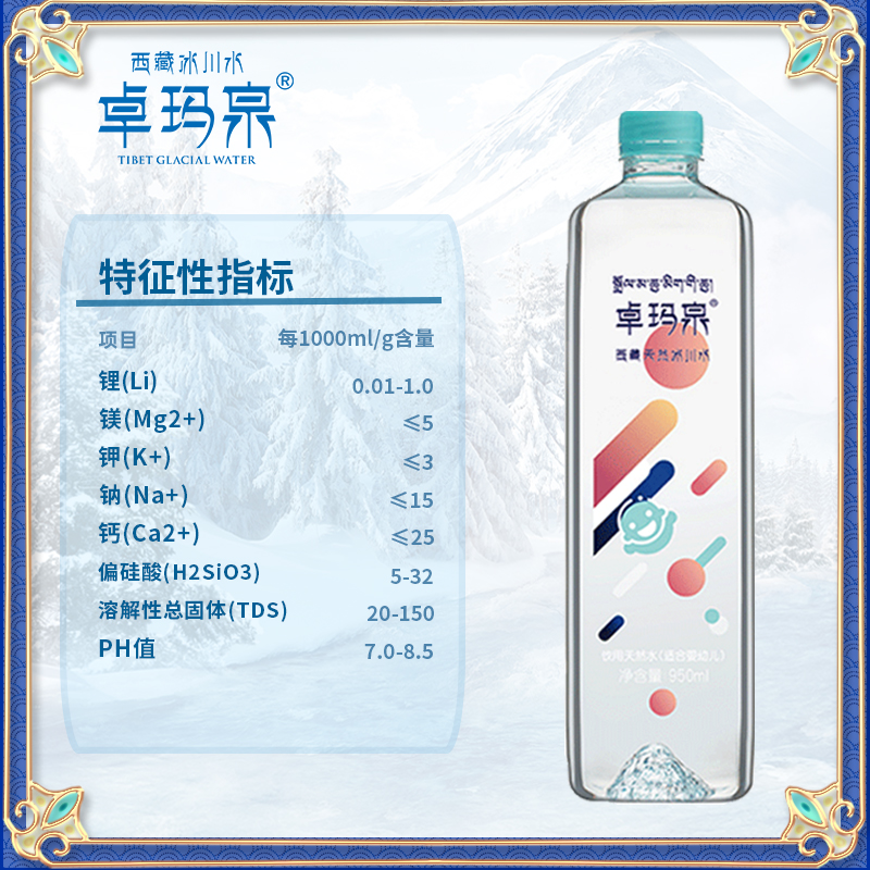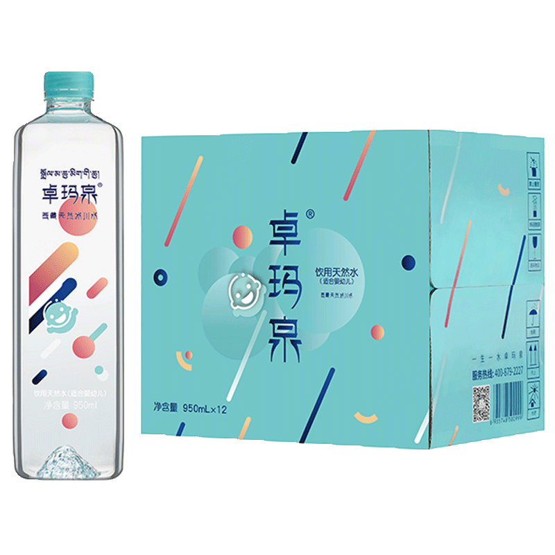Tibet Zhuomaquan natural baby water 950ML*12 bottles of infant baby weak alkaline water mineral spring drinking low sodium