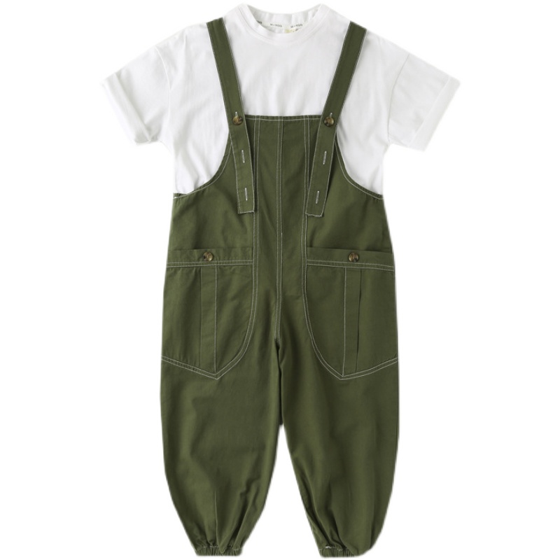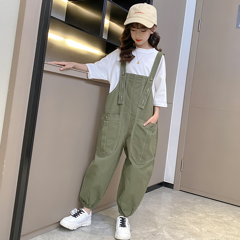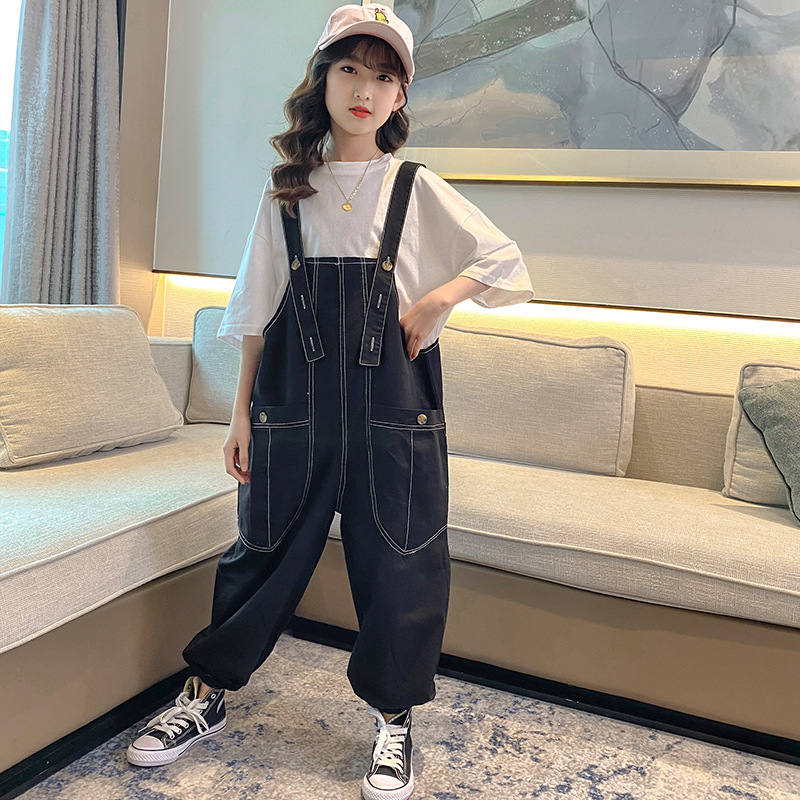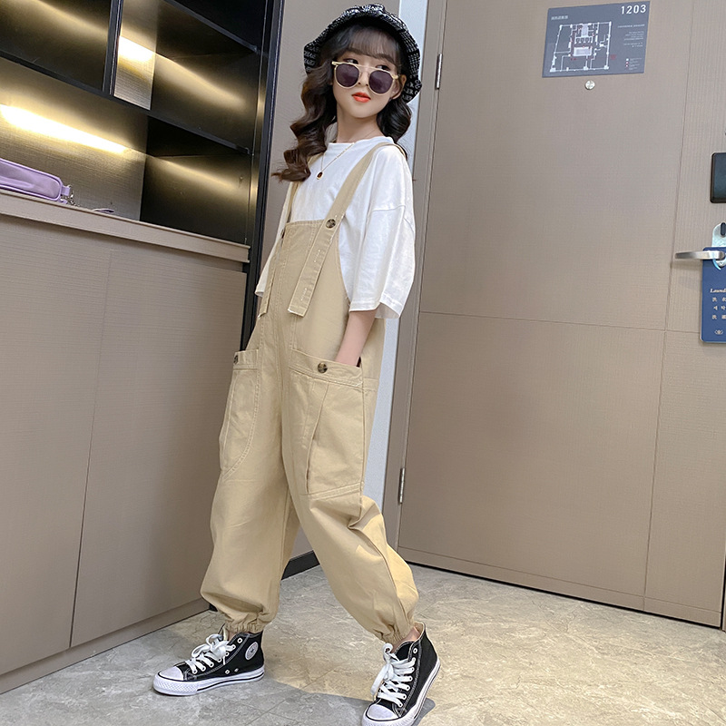 Girls suit summer high waist big boy Korean version of the Western style loose fashion baby bag pants girl trend fried street overalls
