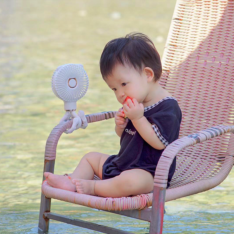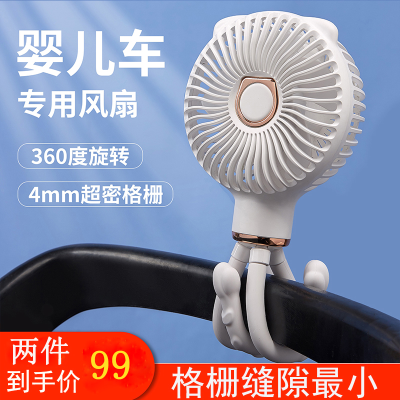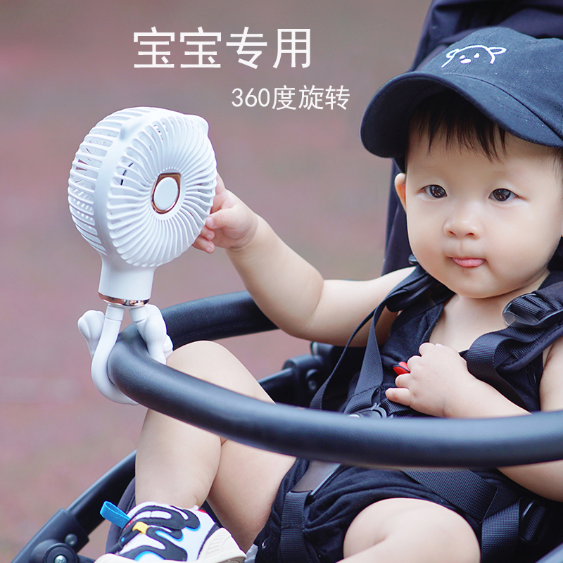 Two 360 ° rotatable baby stroller baby handheld with portable office desktop USB Deputy food fan