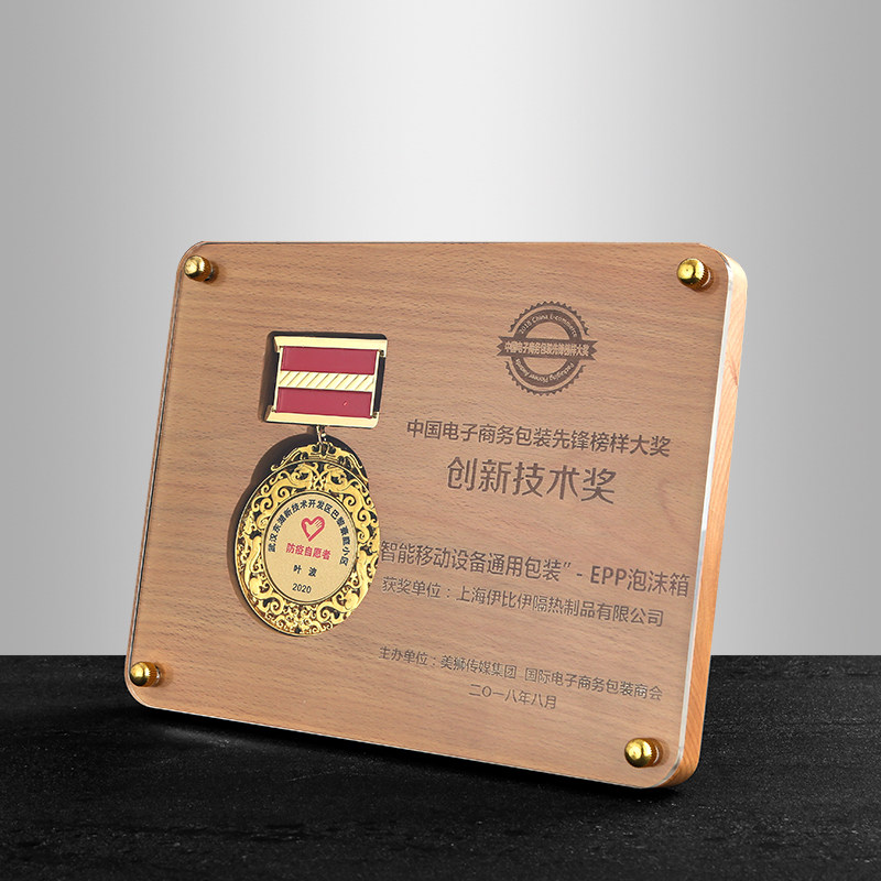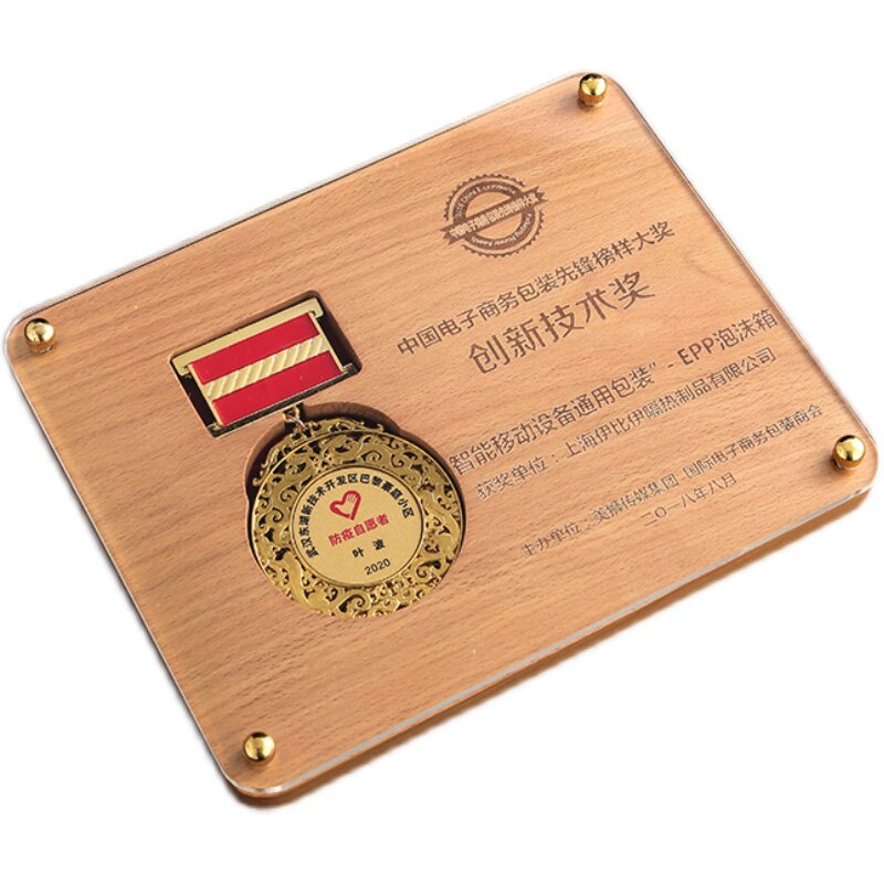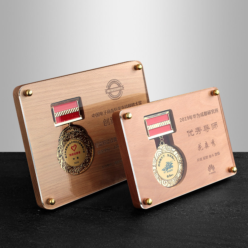 Merit Medal Solid Wood Medal Custom Authorization Card Memorial Wooden Wooden Care Sports Crystal Trophy Acrylic Plaque