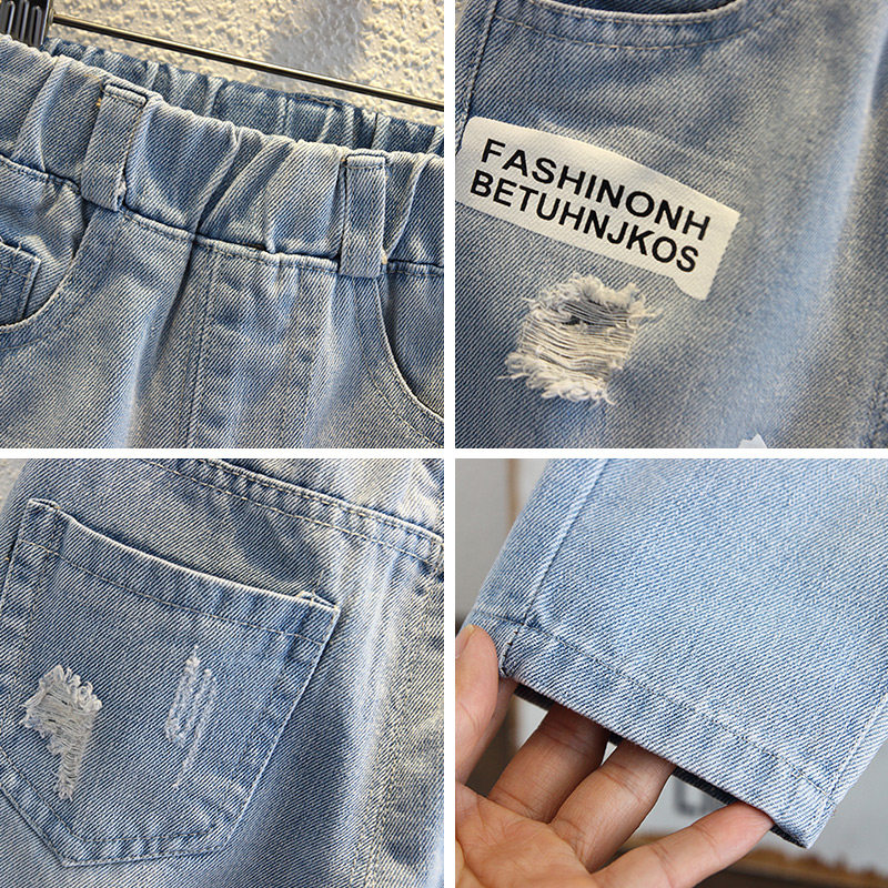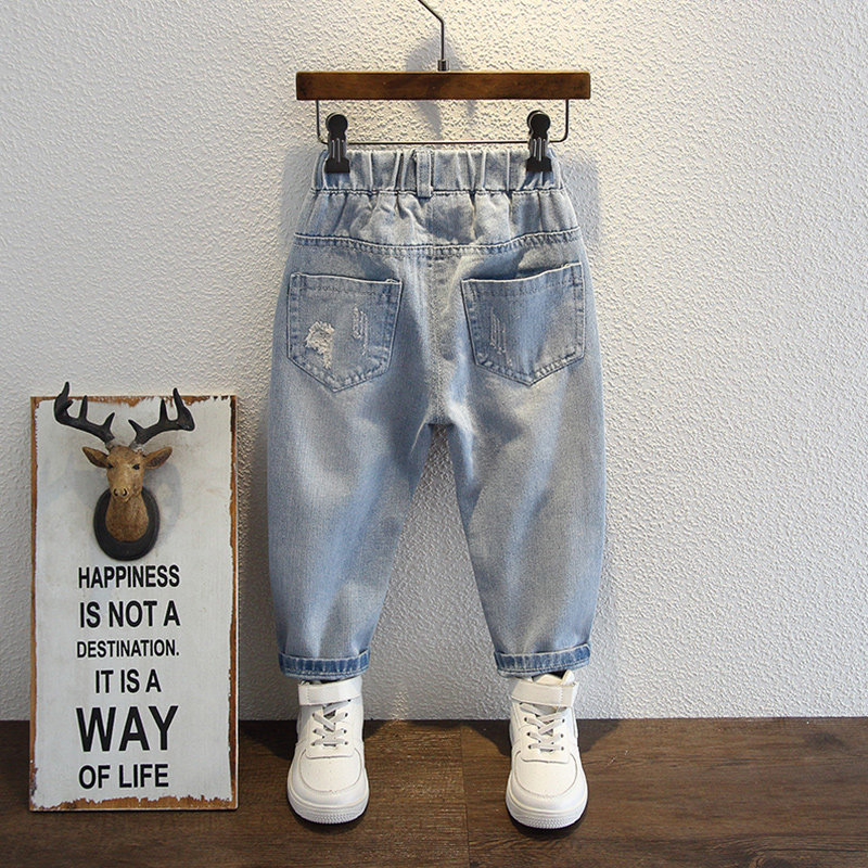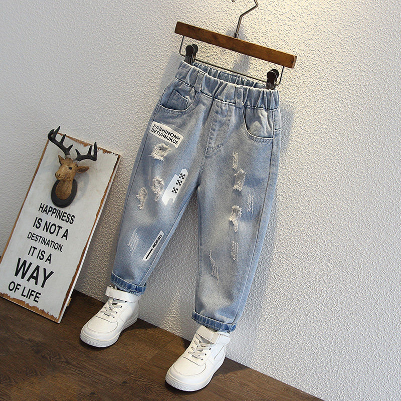 Boys jeans spring and autumn 2021 new children's ripped pants children's Korean version casual handsome autumn trousers