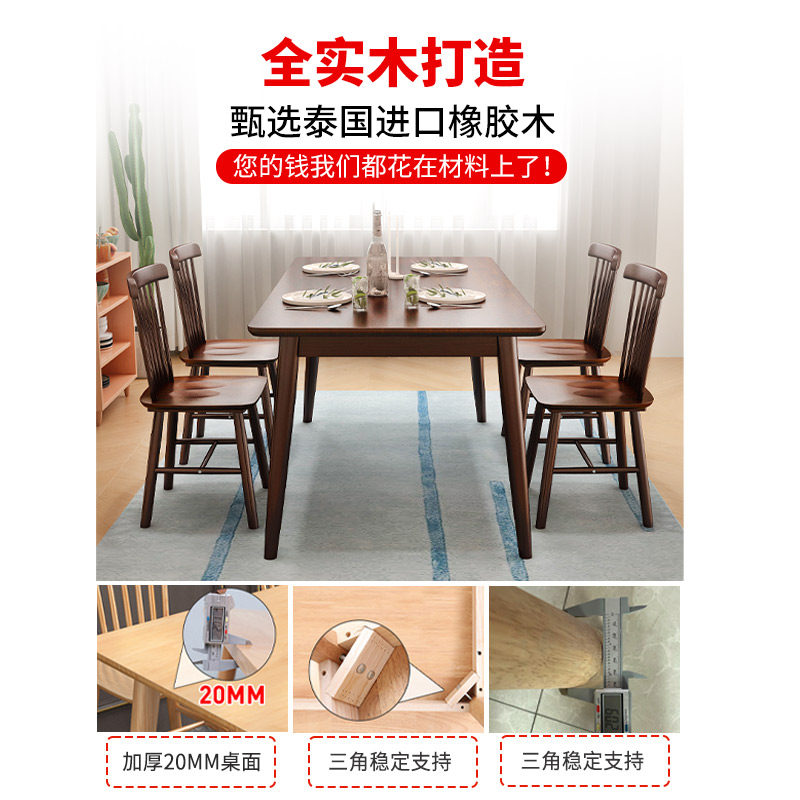 Walnuts Full Solid Wood Table Chairs Combined Small Family Type Economy Modern Minima Rectangular Dining Table Home-Taobao