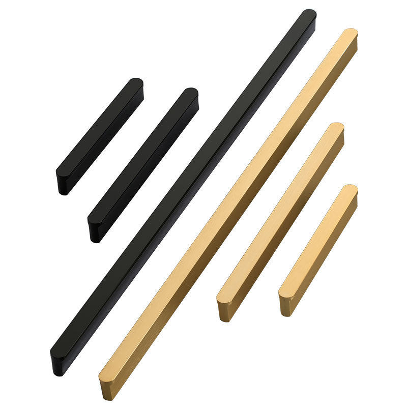 Modern minimalist round head T-shaped aluminum alloy long handle oxidized black gold brushed American cabinet door drawer handle