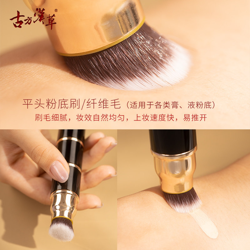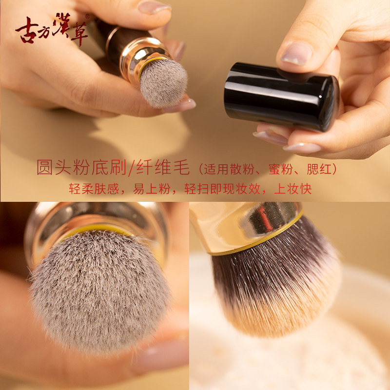 Ancient square Han straw portable powder bottom brushed sponge makeup brush travel can be portable with 3 brushed head with lid beauty brush