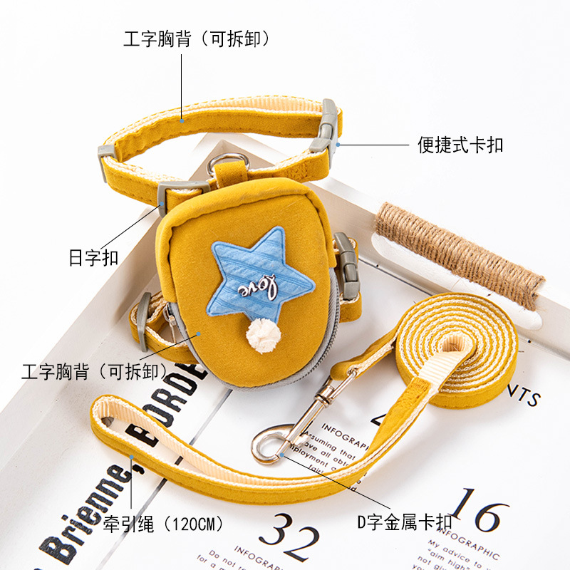 Dog self-knapsack traction rope small dog vest-style walking dog artifact chest-back type cute go out anti-breakaway rope