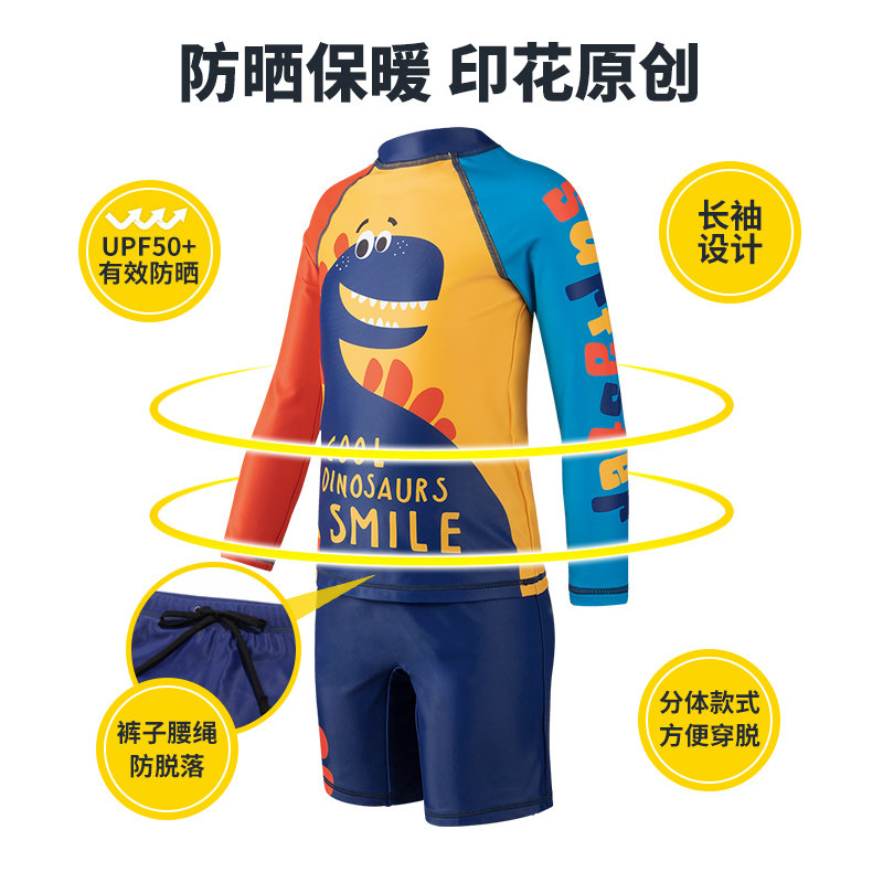 Long-sleeved sunscreen children's swimsuit Boy one-piece split swimsuit Baby boy children summer new medium and large children
