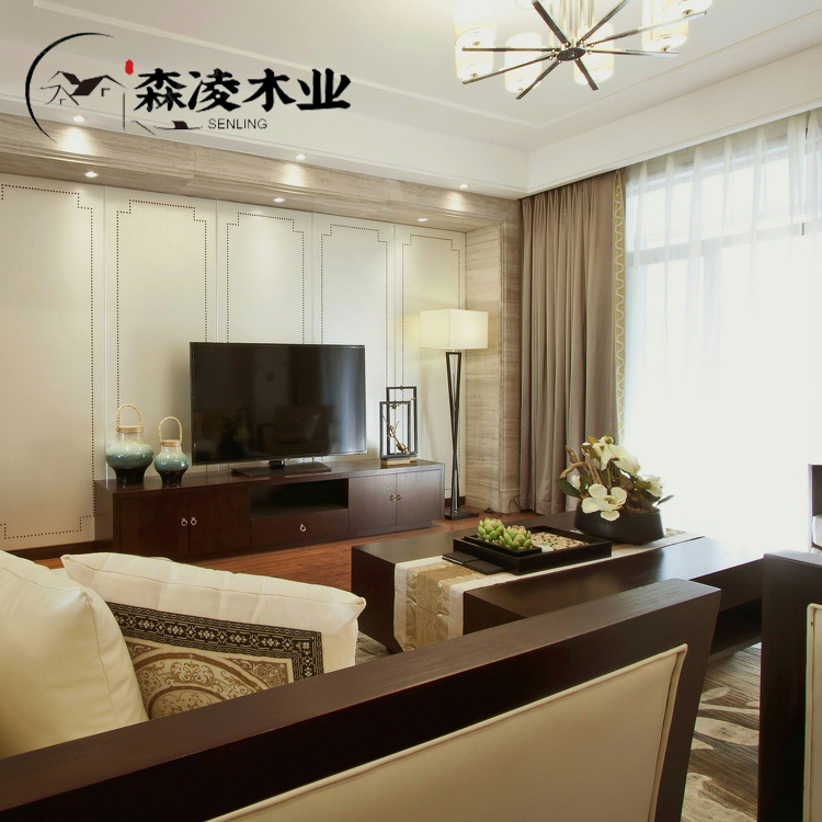 New Chinese sofa Modern minimalist Living room solid wood cloth Sofa Combined sample House Sample House Display Centre Furniture