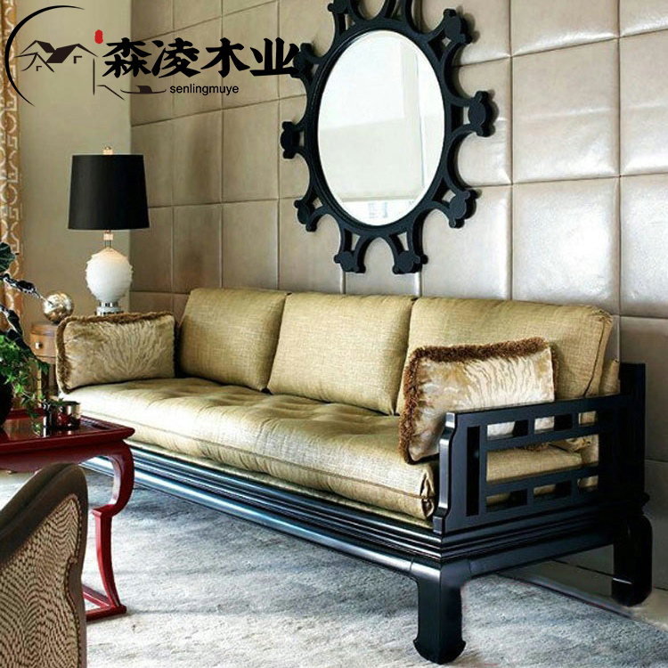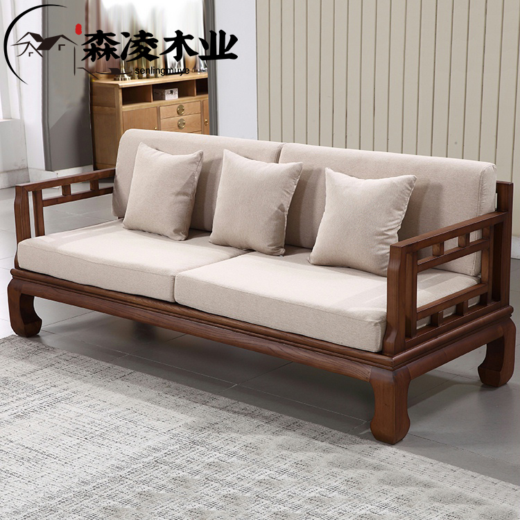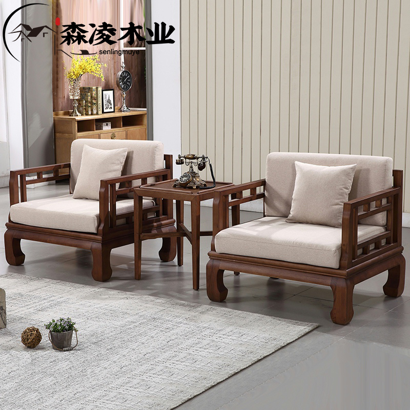 New Chinese style all solid wood sofa combination Chinese style Zen modern small apartment sofa living room furniture whole house home