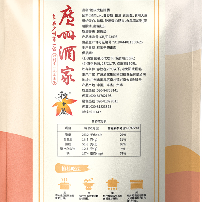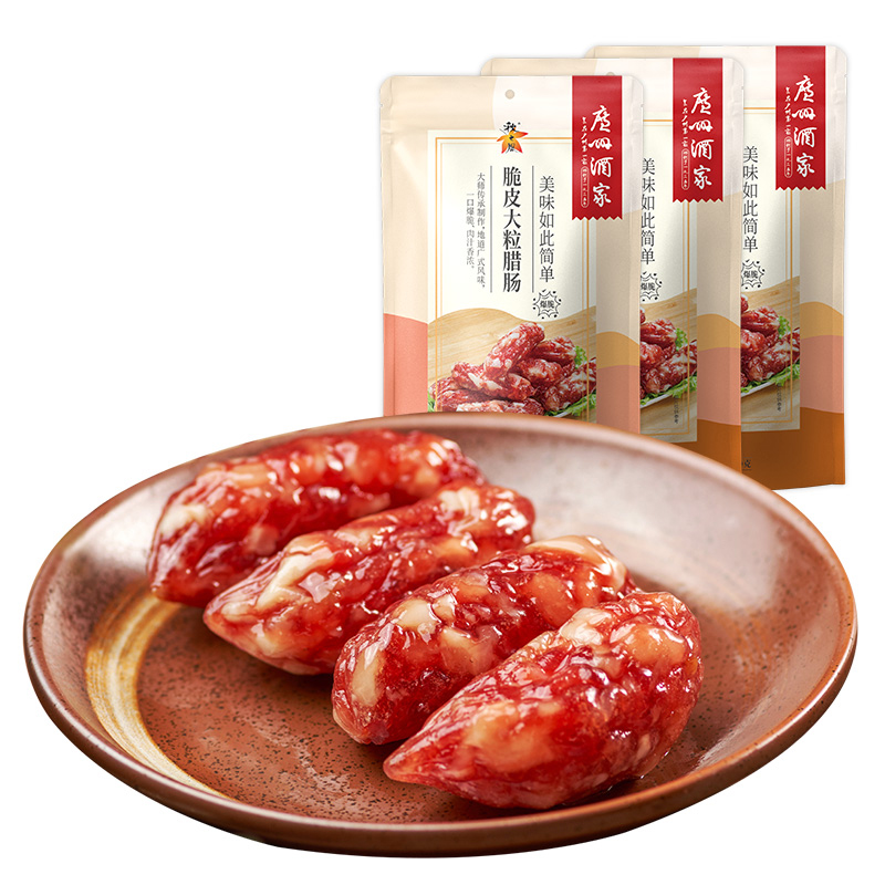 Guangzhou Wine Family Autumn Wind Crisp Leather Big Grain Sap Sausage Bagged Broad Sausage Cantonese Special Delivery Courtesy Hand Letter 150g * 3