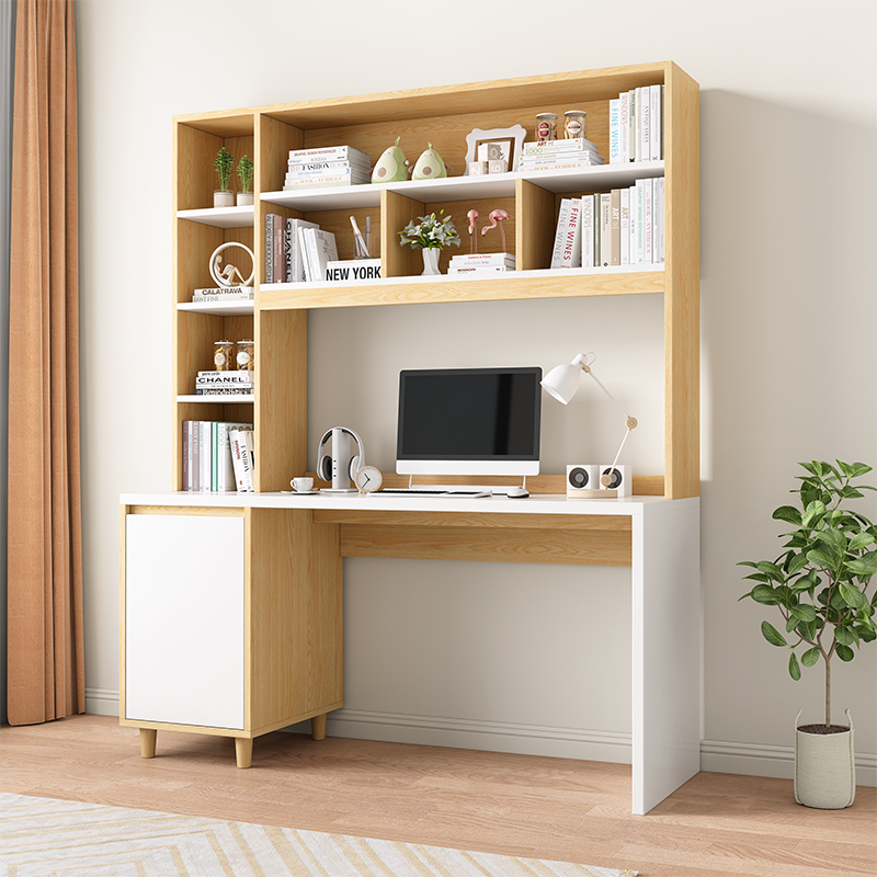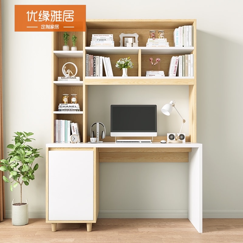 Computer desk desktop table simple home children's solid wood desk bookshelf one-piece combination bookcase desk learning table