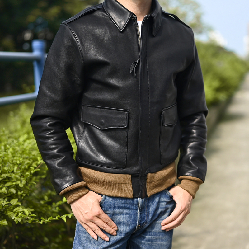 Retro Men's Fitted Body Short Top Layer Leather A2 Air Force Flight Jacket Lapel Casual Leather Coat Large Size