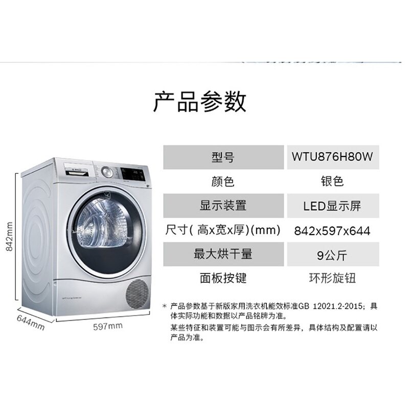 Bosch dryer dryer home WTU876H90W large capacity energy saving efficient self-cleaning intelligent temperature control