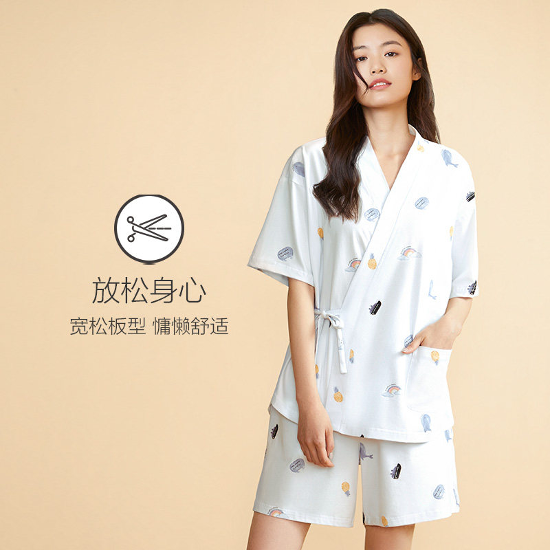Pure Cotton Short Sleeve Pyjamas Lady Suit Red Bean Hanfu New National Wind Home Conserved Day Ensemble Kimono and Summer Thin Tide