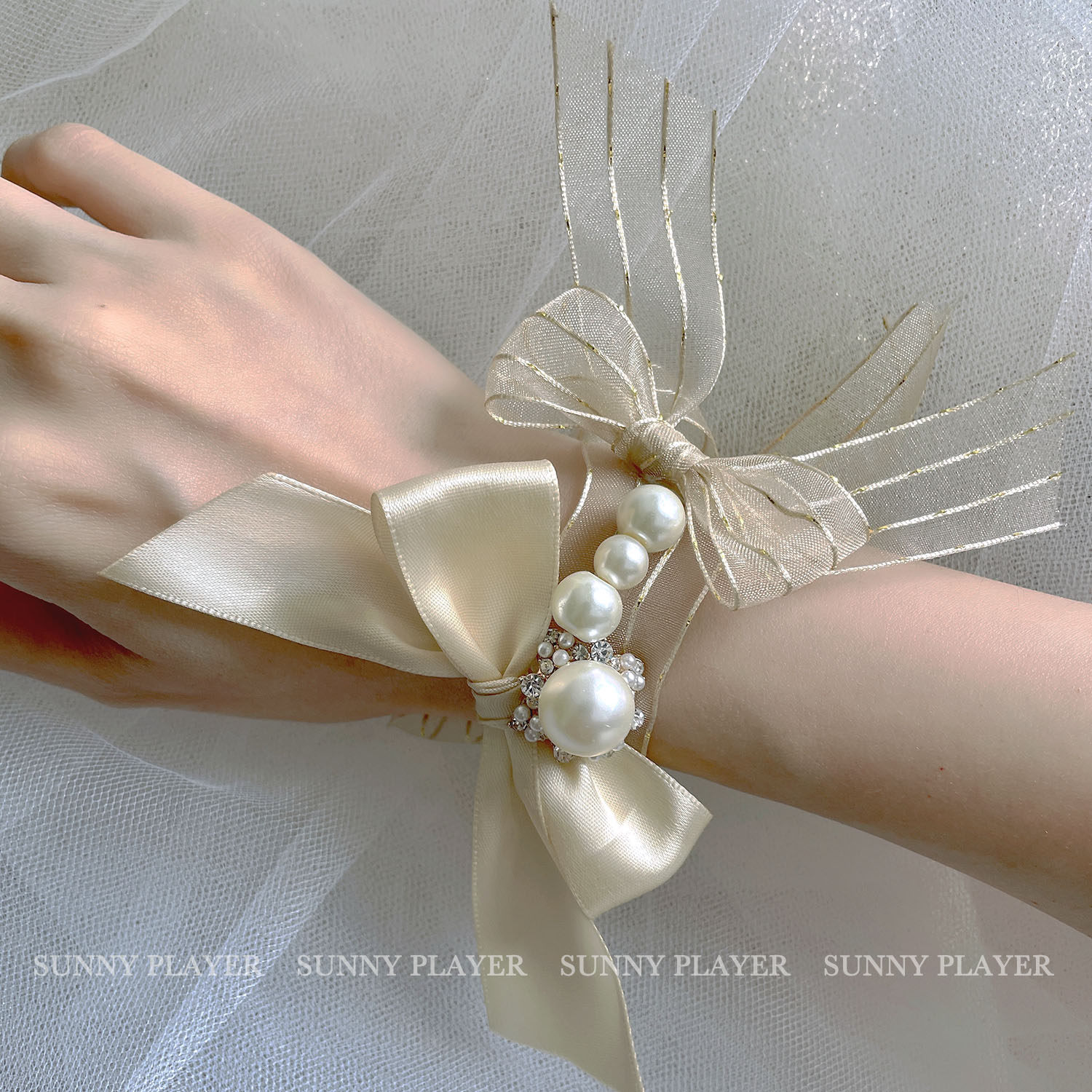 Wrist Flower Bridesmaid Wedding Wedding Wedding Brief Josen Ensemble Superfairy Grey Champagne Sisters Bracelet Flowers