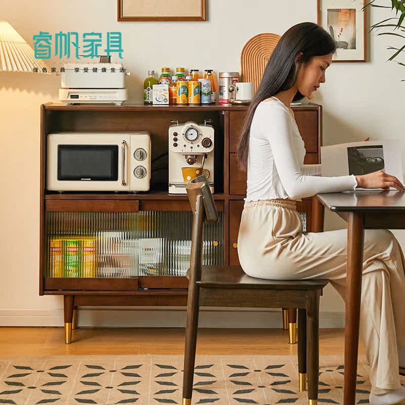 Nordic Solid Wood Dining Side Cabinet Living Room Wine Cabinet Home Leaning Wall Containing Cabinet Kitchen Cabinet Bowls Tray Cabinet Light Lavish Tea Water Cabinet