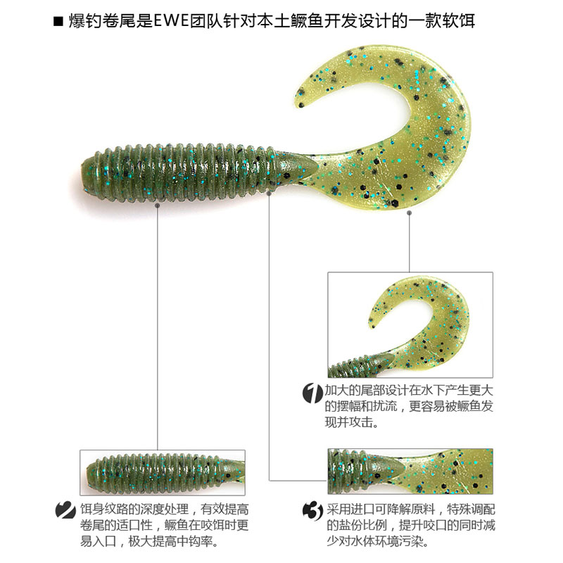 EWE Beauty Summer Official Authorization Guaranteed Explosive Fishing Roll Tail 3 4 Inch Road Subbait Lead Hook Soft Worms Soft Bait