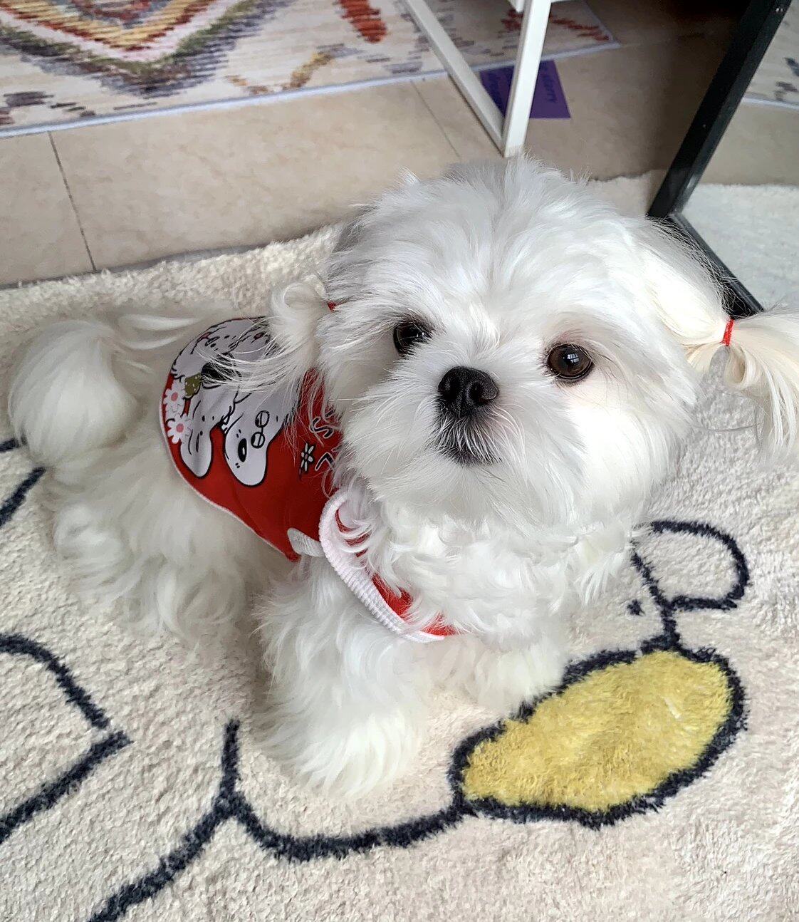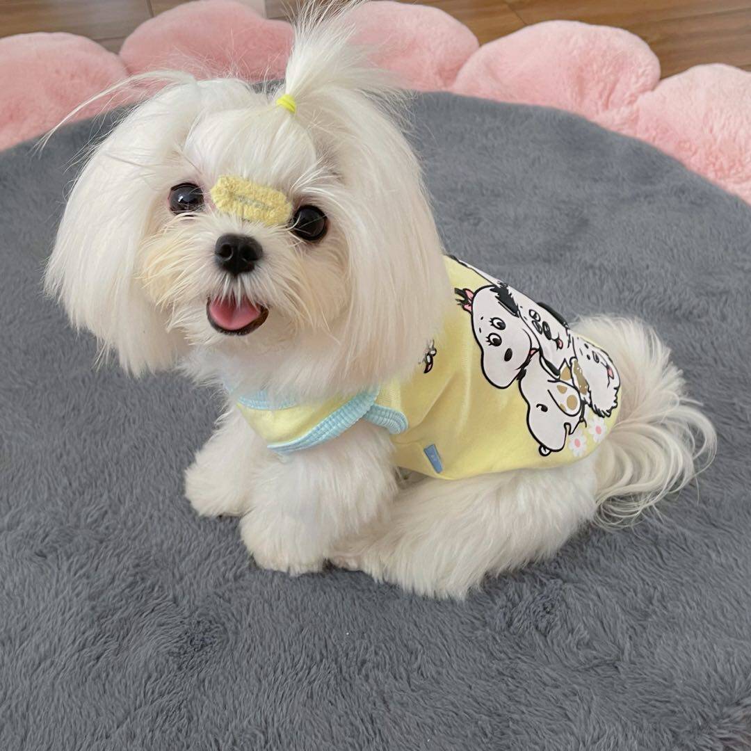 Eat endless snail powder supercute printed collage with small vest pet clothes Puppy clothes spring and summer