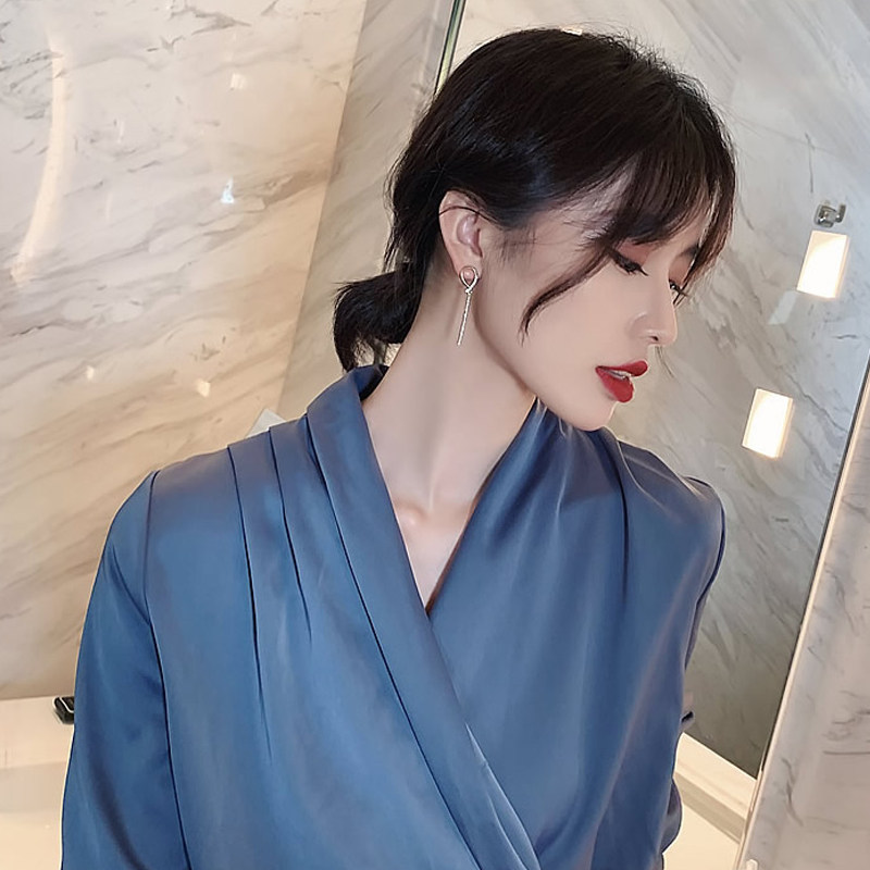Turning back rate qiao high ~ light extravagant ~ advanced atmosphere pure silver ear nail lady inlaid drill net red flow Su female temperament tide