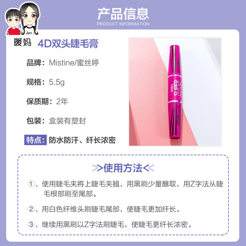 Thai Mistine honey SATINIQUE butterfly bean flower double head mascara waterproof fiber long roll up to bottom nectar