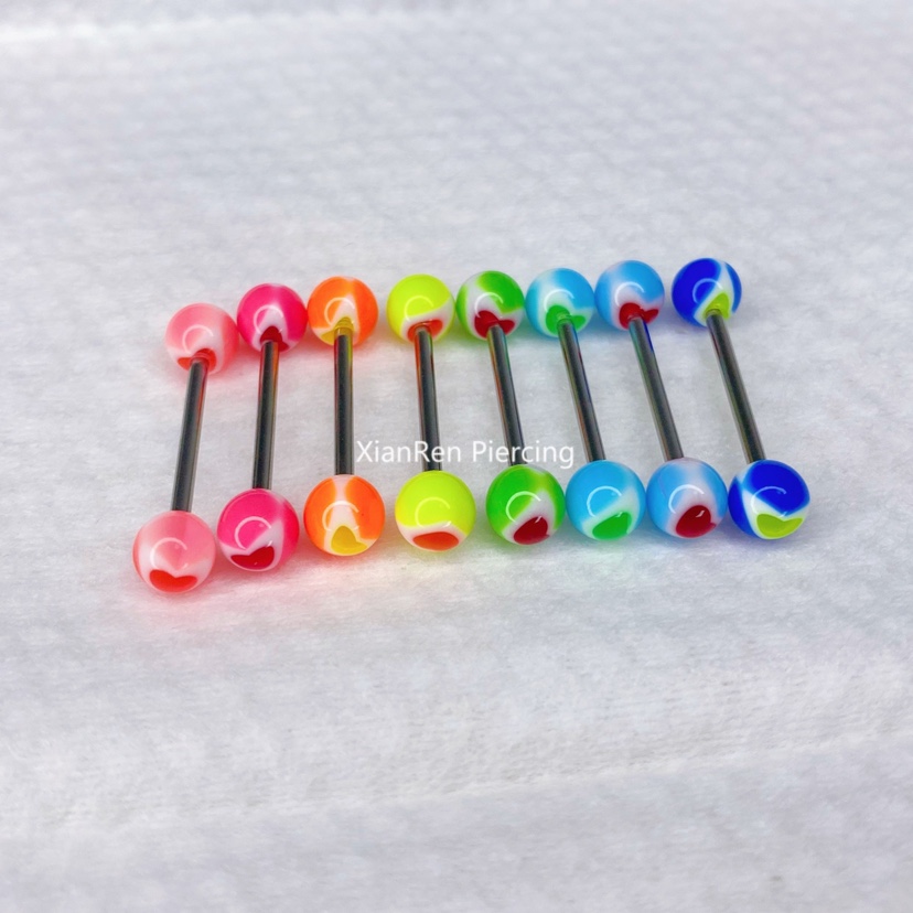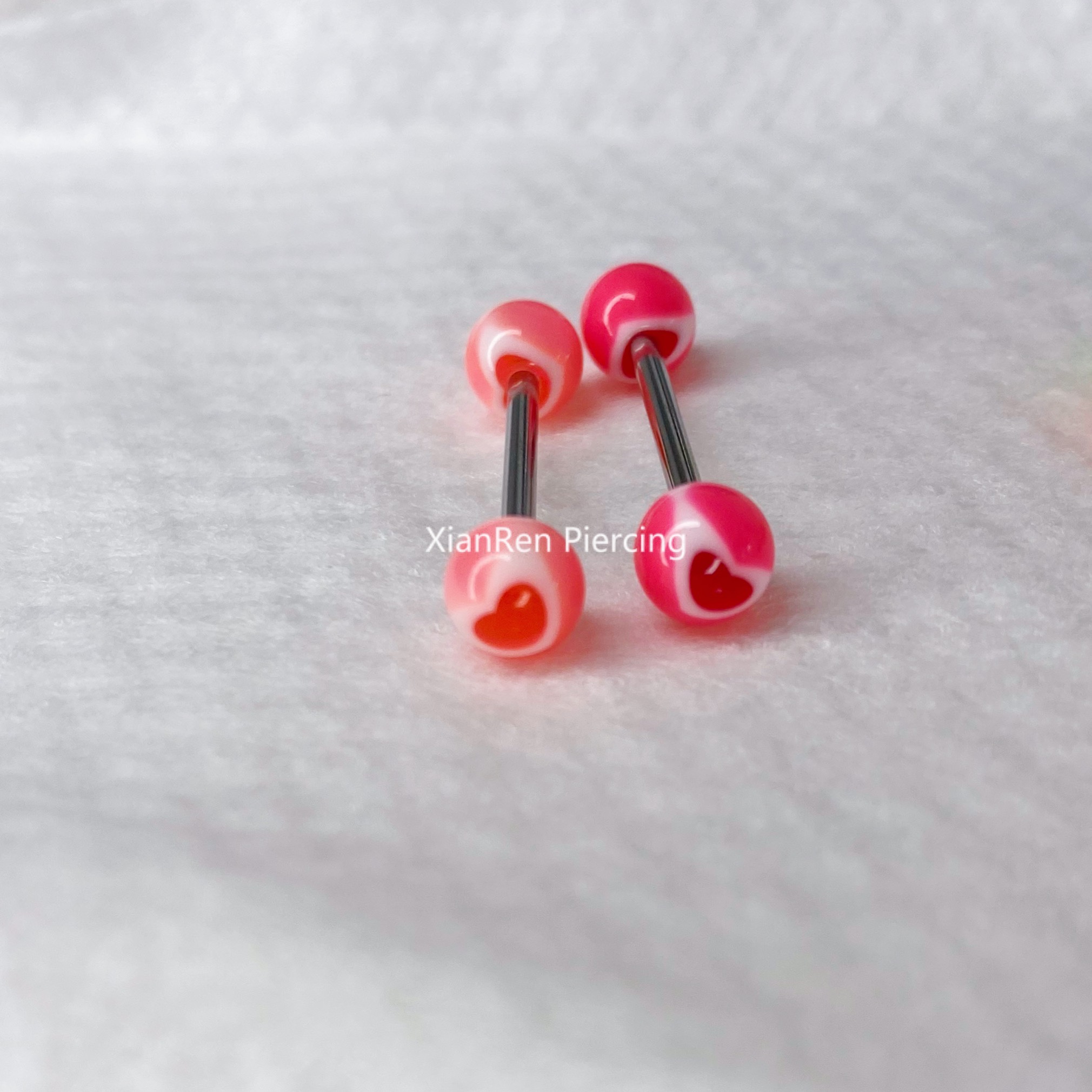 Fairy piercing cute personality love peach heart tongue nail titanium steel acrylic tongue nail niche hot girl piercing jewelry