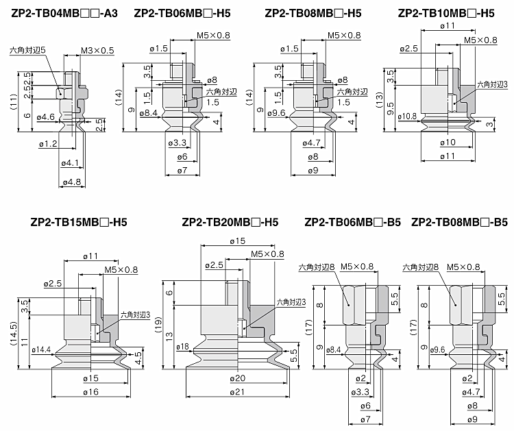 ZP2-TB04MBN-A3 (black) ZP2-TB06MBN-H5 (black) ZP2-TB08MBN-H5 (black) ZP2-TB