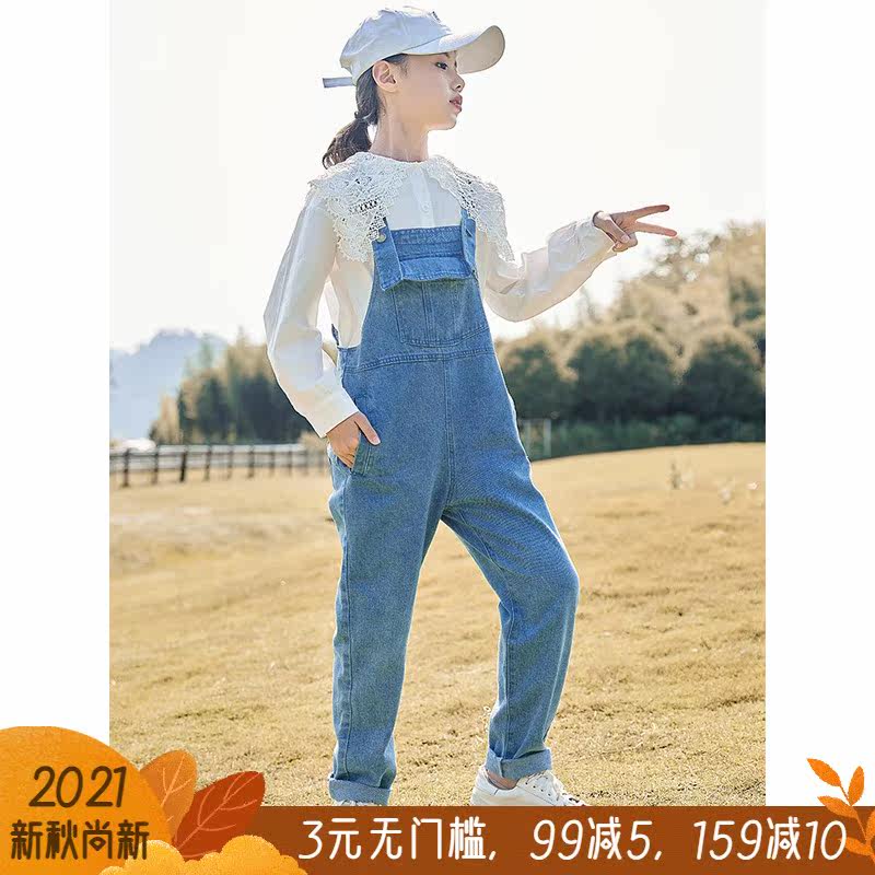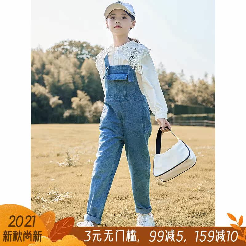 Children's wear girls jeans baby bag pants set 2021 autumn girls cotton shirt baby bag set jeans pants tide
