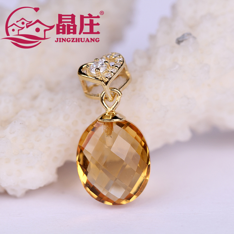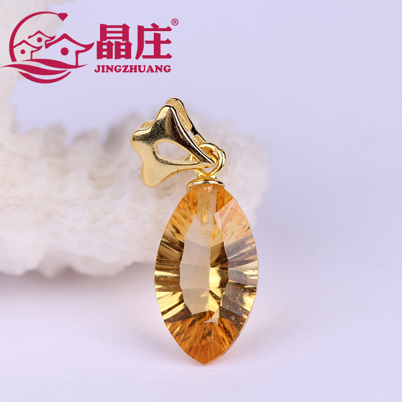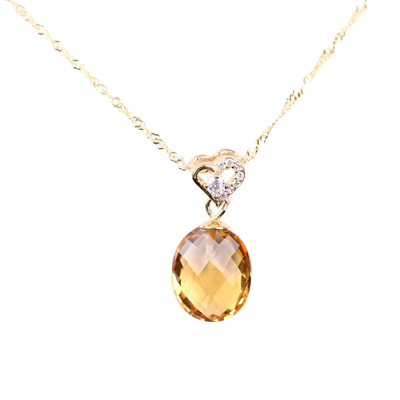 New products natural yellow crystal pendant s925 silver 24 K gold necklace for the gold - yellow high - sensation niche design
