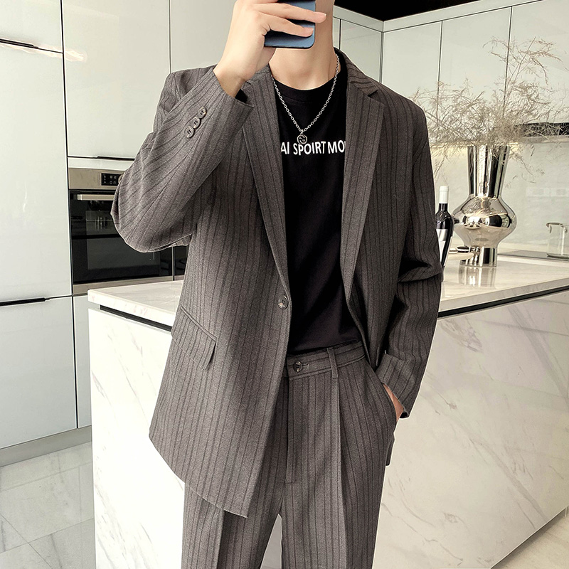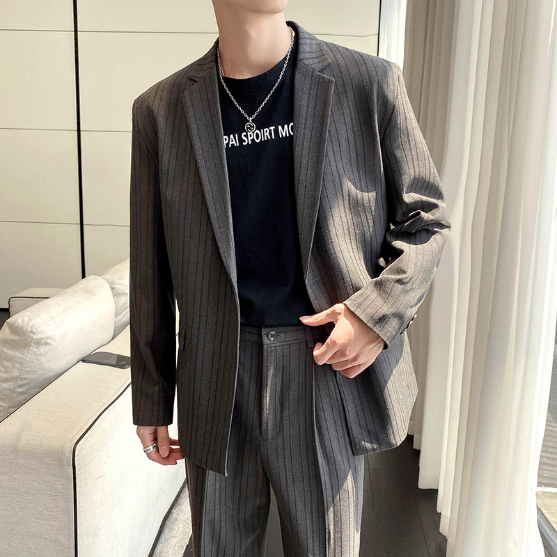 Early spring men's suit suit Two sets of Korean version loose casual light and light and luxurious New groom suits fried street exploits