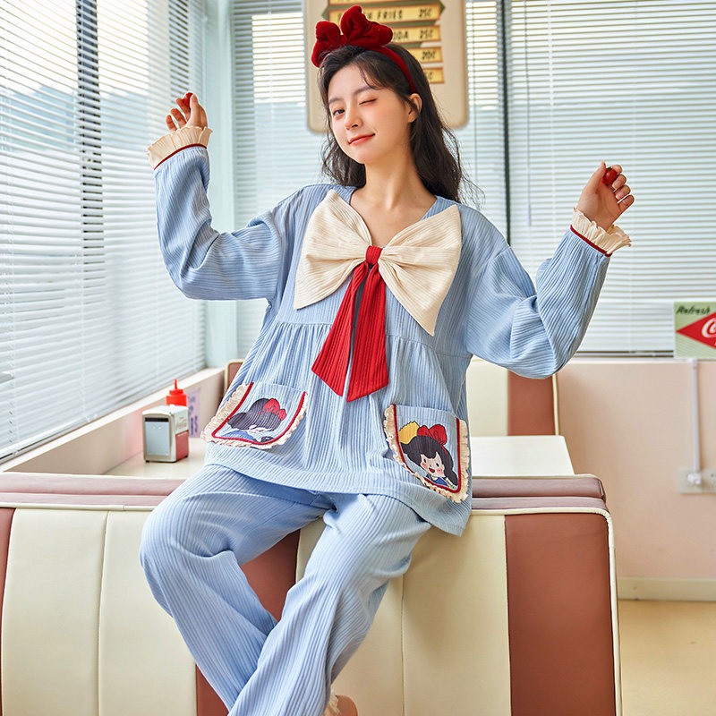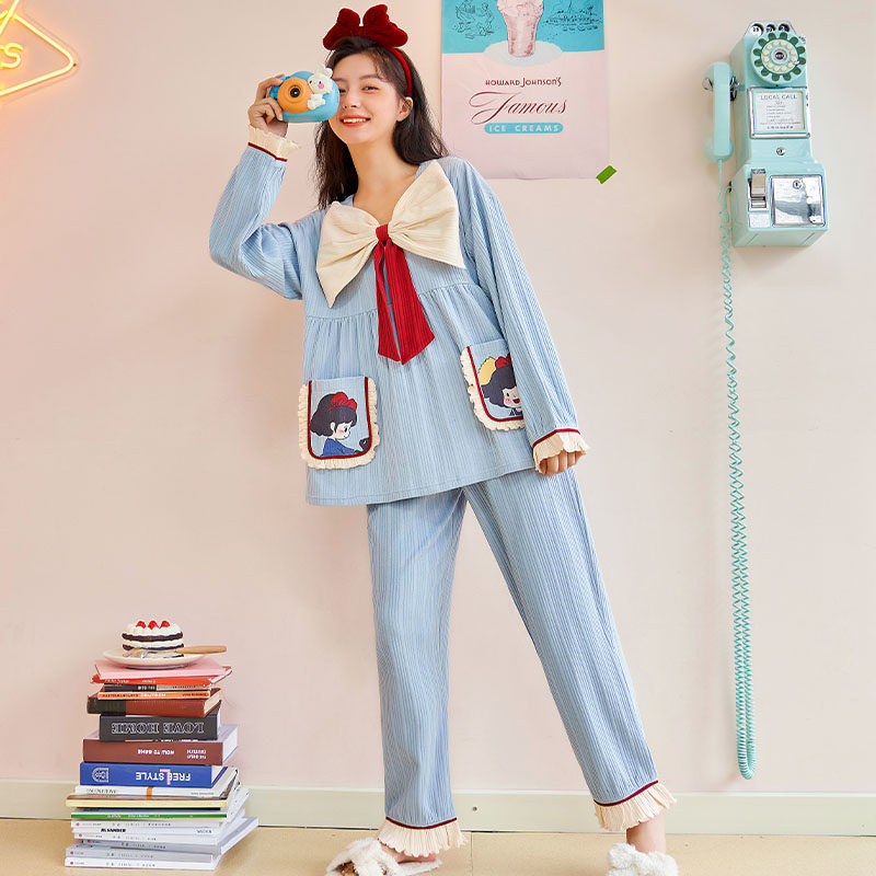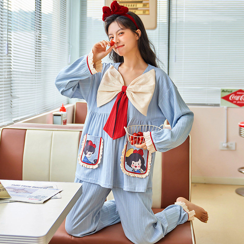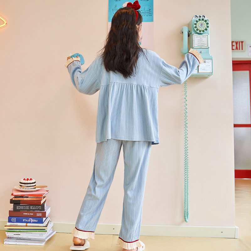 2021 new large size pyjamas women's summer two sets long sleeves thin cotton spring fall lovely home suit suit