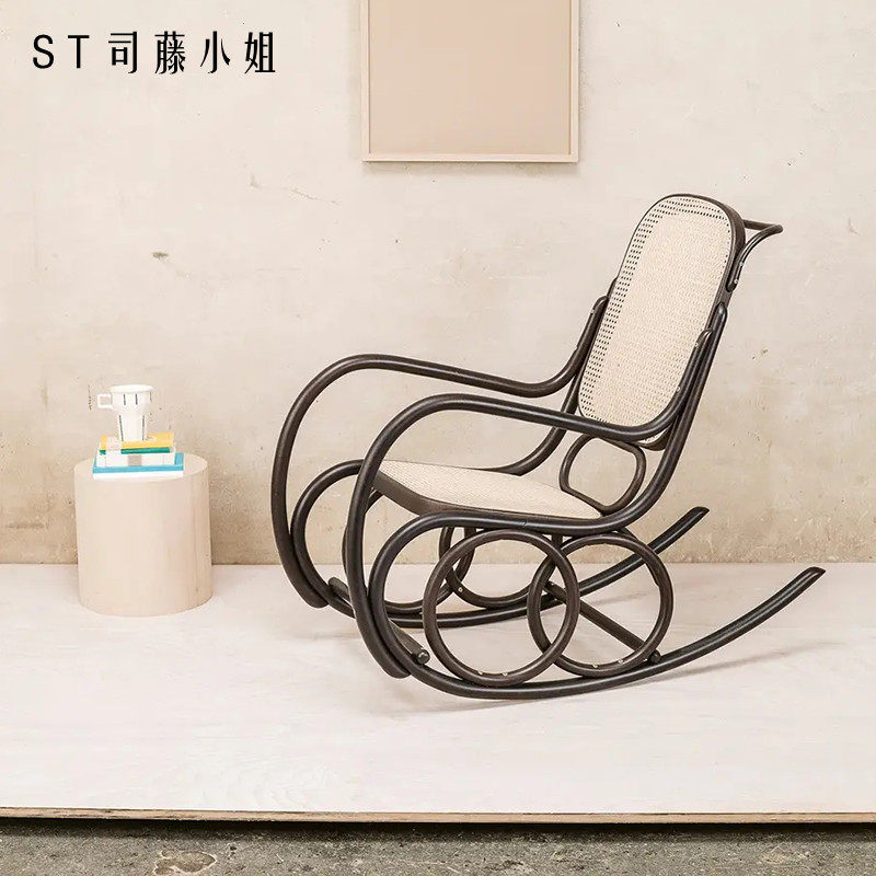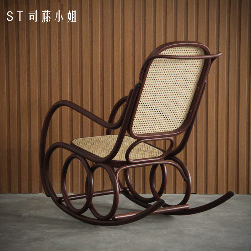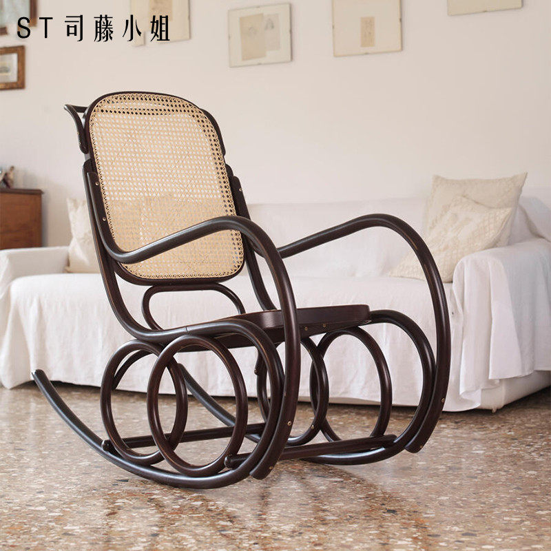 Real shot Czech natural rattan rocking chair reclining chair adult rattan chair home elderly rocking chair balcony nap chair