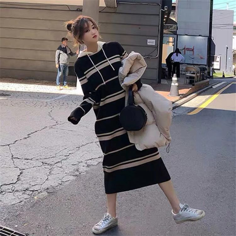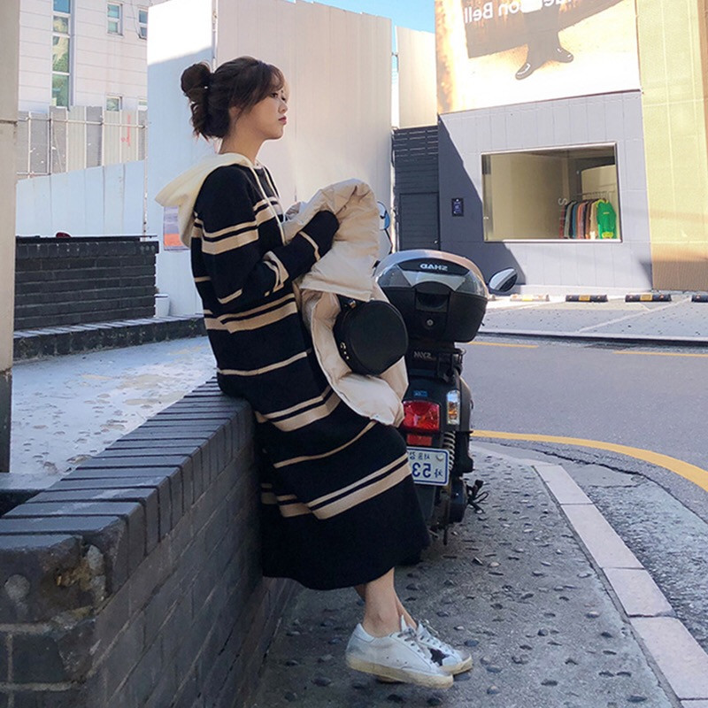 Premium pregnant women dress spring dress new Korean striped sweater loose knitting knit knit skirt autumn and winter