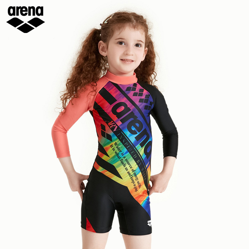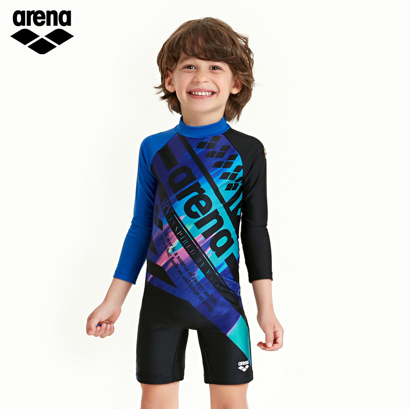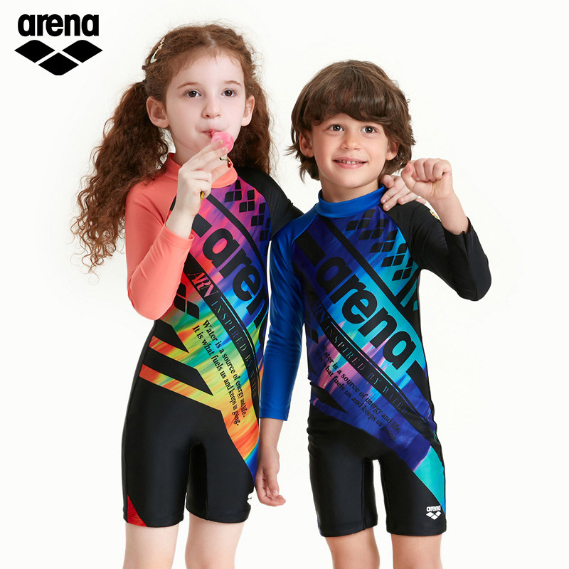areena Arena children teenagers conjoined 50% swimsuit men and women long sleeve sunscreen fashion printed swimwear